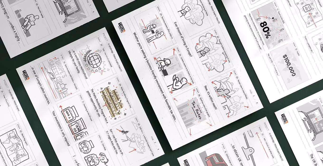 After launching the website, we crafted a set of motion graphic videos to explain the value of second citizenship in a direct and human way. Through sharp storyboards and clear narratives, we helped users understand how the right passport can unlock freedom, security, and opportunity for their families. With three custom videos, the message became not just informative but emotionally resonant.