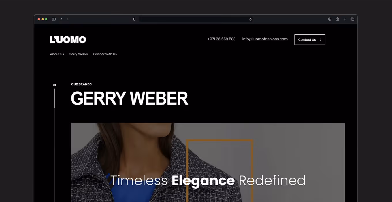 We shaped L’UOMO Fashions into more than just a site. It became a curated space that speaks directly to luxury fashion houses. Every design choice was made to signal professionalism and vision, establishing a clear channel for high-end brands looking to enter the region.