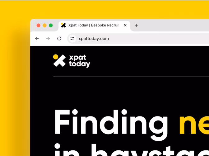 The XPAT Today logo tells a subtle story where a bold X and T merge to form a human figure, a nod to the brand’s people-first mission. This visual anchor extended across the entire identity, creating a cohesive brand experience. The website followed suit: clean, minimal, and built for speed. With high-contrast colours like yellow, white, and black, and a clear-cut layout, the interface makes finding talent feel seamless and immediate, just like the company itself.